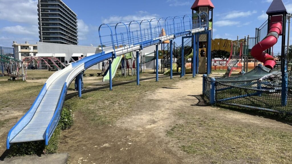 滑り台がいくつか連結されていて、どこから滑ろうか迷っちゃうほど充実していますね。