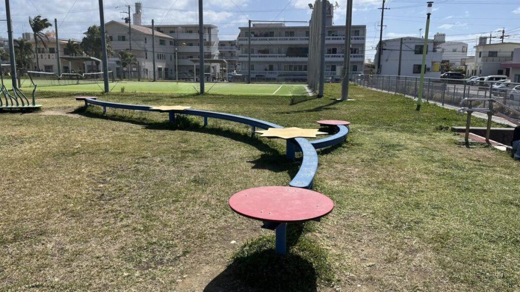 遊具のそばには平均台もありました。