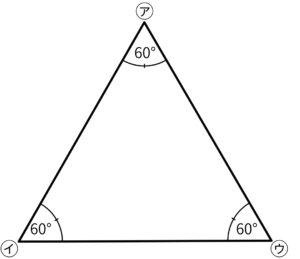 角㋐、角㋑、角㋒はすべて60°で等しい。