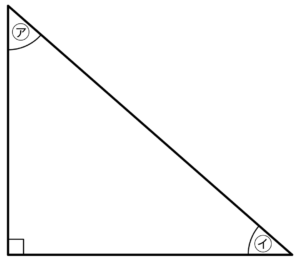 ・三角形の内角の合計は180°であり、1つの角で90°を使ってるので残りの2つの角をたすと、必ず90°になる。