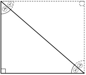 ・長方形を対角線で半分に割った形なので、同じ直角三角形をくっつけると長方形ができあがる!
