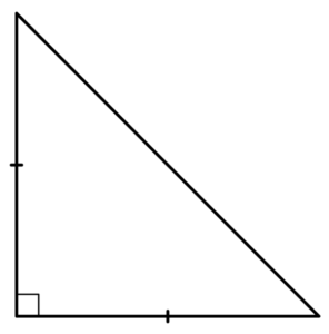 ・1つの角が90°(直角)で、その両脇の辺の長さが等しい三角形。
